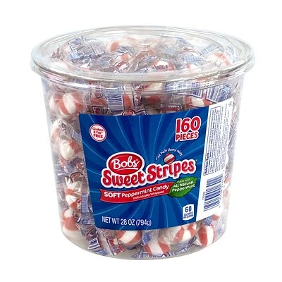 28-Ounce Tub of 160 Individually Wrapped Bob’s Sweet Stripes Soft Peppermint Candy