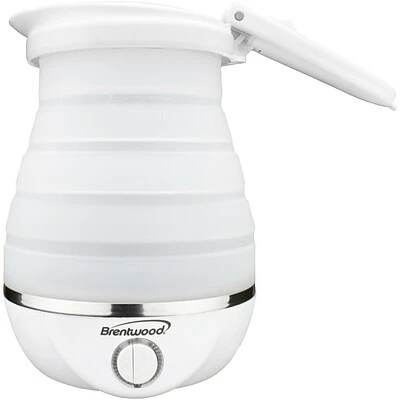 Use the powerful Brentwood Appliances KT-1508W .85-Quart Dual-Voltage Collapsible Travel Kettle to quickly bring water to a boil anywhere you go! This convenient travel kettle’s body and handle collapses when not in use for easy storage and travel. The white kettle features BPA-free materials, a concealed heating element, and a stainless steel hot plate.