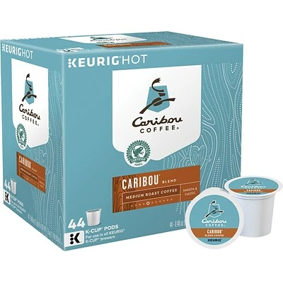 Indulge yourself and get a boost of energy with these Caribou Blend coffee pods. Each one boasts woodsy, spicy hints that blend with a subtle note of fruit to create an invigorating aroma and flavorful beverage. These Keurig K-Cup Caribou Coffee pods come in a pack of 44, making them a great choice for restocking the office, break room or waiting room.