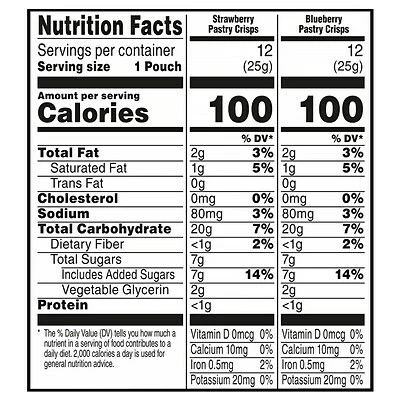 Light and just right, two Special K Pastry Crisps are only 100 calories, with no cholesterol.