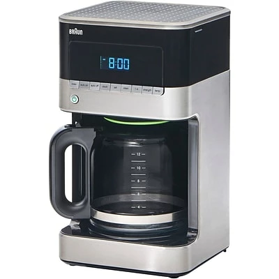 Exceptional flavor is about nuance and balance. Braun’s BrewSense Drip Coffee Maker, model KF7150BK, blends the two for rich, reliable coffee at home. Each satisfying coffee experience begins with expert brewing knowledge, thoughtful design, and Braun’s unique PureFlavor system that brings out the essence and complexity of each coffee bean. The Brew Strength Selector allows you to enjoy your coffee regular or bold – just the way you like it. For the ultimate in precision, the innovative carafe lid seals in flavor while the anti-drip system allows you to pour any time during the brewing cycle. And with an automatic 24-hour programmable timer, you won’t have to wait to enjoy that first sip the moment you want it. This coffee maker’s sleek design, large display and two-tone stainless steel/black finish make it the perfect finishing touch to your kitchen. Savor a world of flavor and aroma with Braun’s BrewSense Drip Coffee Makers.