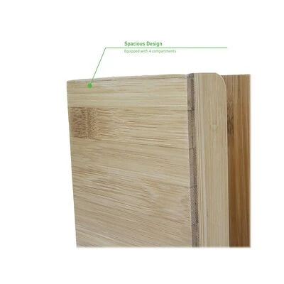Keep your space clean and clutter-free with this Mind Reader four-section bamboo storage organizer. This perfect, multipurpose organizer can be used as a coffee condiments organizer in beverage areas, on countertops, in breakrooms, and in shared dining areas. Use it to store coffee and tea condiments, food condiments, and utensils to keep areas tidy and clean. This kitchen organizer features seven compartments great for storing small items such as tea bags, sugar packets, creamers, straws, utensils, and food condiment packets, and other small items. This space-saving organizer makes coffee service areas and dining areas easy to organize in hotel lobbies, breakfast service areas, breakrooms, at home on kitchen countertops, kitchen drawers, or at work. Use this item for office desk organization of small items, including paper clips, thumbtacks, rubber bands, staples, pens, and pencils. Use it to organize any small items you need to keep handy in any space. Students need organizers too. Use this bamboo organizer in dorm rooms, common areas where coffee, tea, hot chocolate, hot water is served, on countertops, or in shared kitchen spaces or dining areas. Use it to sort and store hairbrushes and combs, lotions, cosmetics, and makeup tools in your bathroom, walk-in closet, or bedroom. Place on your desk or in a cabinet to store small office accessories or craft supplies such as glues, rulers, markers, crayons, and paintbrushes. This durable bamboo wood is food-safe, and the compact design is easy to place on work counters, kitchen counters, tabletops, or desktops. It’s sturdy and can withstand daily use by employees, staff, customers, and more.