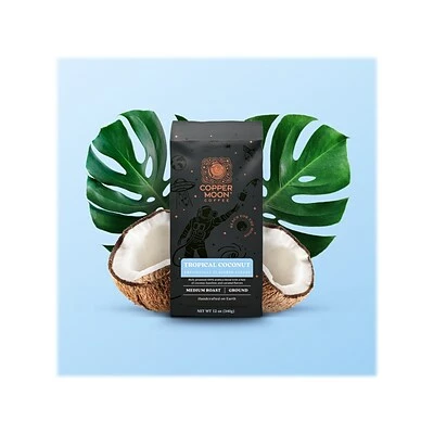 The Copper Moon Coffee Tropical Coconut artificially flavored coffee is a premium blend that pours the essence of the tropics into every cup. Delivering a low-acidic blend of the finest Central and South American coffee beans, it is enhanced with a hint of tropical coconut, hazelnut, and caramel flavors.