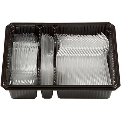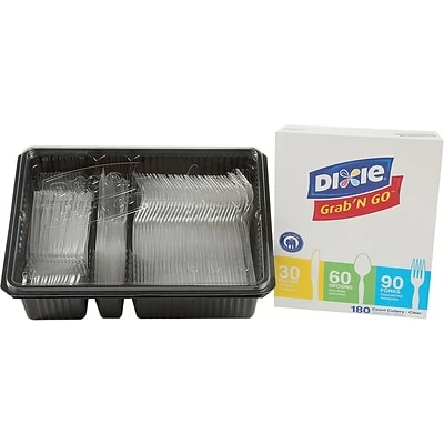 Dixieยฎ Plastic Cutlery Keeper includes 30 Knives, 60 Spoons, 90 Forks. The set contains cutlery items that are made of durable heavyweight plastic and is a great addition for culinary gatherings.