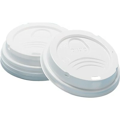 Dixie plastic dome lids keep hot beverages warm and delectable by sealing them away from the cooling effects of wind and cold environments. The tight seal also helps to reduce spills, thus protecting hands from the scalding beverage and electronic equipment from liquid damage. Equipped with a sip-through hole, these lids let you enjoy the drink held within the cup on the go and without having to remove the lid beforehand. These lids fit a wide range of Dixie PerfecTouch and paper hot cups for convenience and versatility.