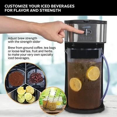 This 10 Cup (2.5-Qt.) Iced Tea and Coffee Maker from VETTA is simple and efficient. This iced tea and iced coffee brewing system is ideal for tea, lattes, and flavored water. With its strength selection and drip-free pour features, it’s great for making large batches of your favorite drinks.
