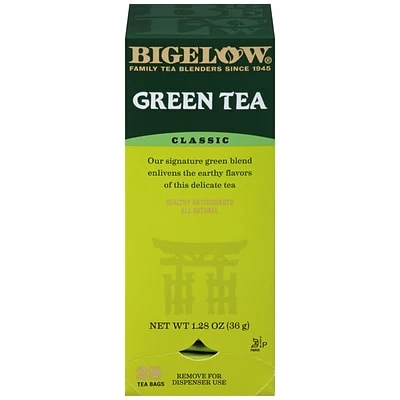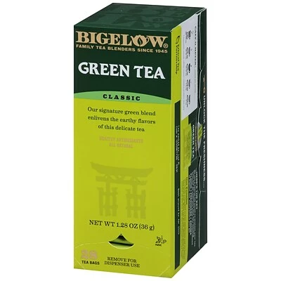 Get a caffeine boost with this delicious green tea that is picked by hand at high-elevations and gently processed to bring out the best flavors. Each packet of Bigelow green tea is wrapped in a foil pouch to keep the flavor fresh and savory. Bigelow Classic Green Tea has the pure clean taste of green tea leaves harvested in high altitudes and gently processed for a smooth flavor that is neither harsh nor bitter. Perfect anytime.
