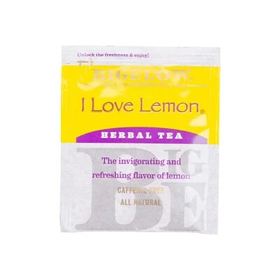 Bigelowยฎ I Love Lemon Herbal Tea with Vitamin C is an all-natural beautifully lemony tea with a full daily dose of Vitamin C in every bag. It’s naturally caffeine free and the added hibiscus gives it a fruity tart aroma & flavor you can enjoy anytime. Individual fresh pack. With Vitamin C added. A special herb tea blend for lemon lovers. No caffeine. All natural. Individual fresh-pack locks in flavor. For three generations the Bigelow family has specialized in creating a variety of deliciously different teas and herb teas. Our individually overwrapped tea bags ensure that the last cup of tea you have from this box is just as delicious as the first. Each tea bag is individually sealed in a foil packet. Blended and packaged in the U.S.A.