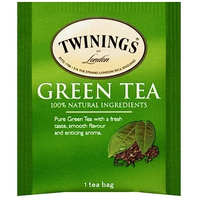 Treat yourself to a healthy beverage and let one of these green tea bags steep in a cup of boiling water. The green tea leaves deliver enticing aromas when brewed, and provide an all-natural form of caffeine derived from the tea itself. Each serving in this box of Twinings green tea bags comes individually wrapped, making it easy to enjoy at home or in the office.