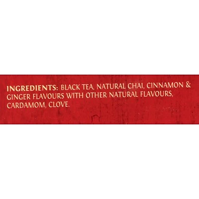 Black tea with sweet & savory spice flavors of cinnamon, cardamom, cloves & ginger. Contains 25 bags per box.