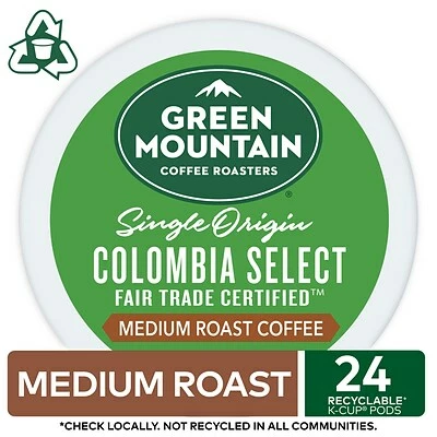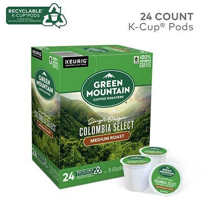 Start off the day with these Single Origin Colombia Select Fair Trade Certified coffee pods. With a medium-roast body, these coffee pods have a smooth, mild taste, while the hints of cocoa and caramel mix deliciously with notes of apricots and plums. These Keurig K-Cup Green Mountain coffee pods come in a 24-pack for quick and easy restocking. Discover the ripe fruits of the abundant mountain valleys of Columbia. Notes of caramel and cocoa balance the bright warmth of plums and apricots for a smooth, rich finish.