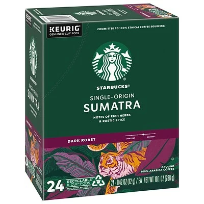 Make single cups of full-bodied, dark-roast coffee with these coffee pods. The single-origin beans are ground and packaged in sealed units for easy, mess-free preparation in your single-serve brewer. These Keurig K-Cup coffee pods come in a box of 24 to let you make customized cups of caffeinated coffee for multiple guests or colleagues.