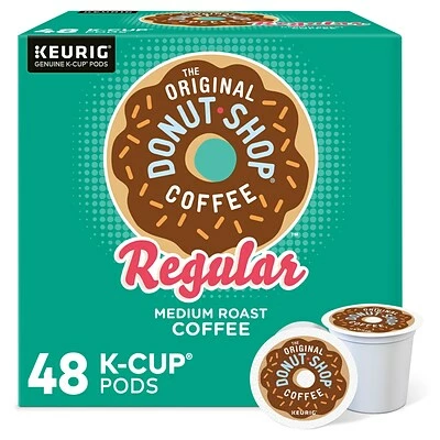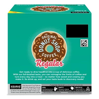 Brew a medium roast cup of the Original Donut Shop coffee for a boost of caffeine with practically no wait. These Keurig K-Cups make it convenient to personalize your coffee experience by simply popping one in the machine. Individualized pods make these Original Donut Shop Keurig K-Cups an easy mess-free way to provide coffee in the conference or break room.