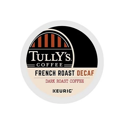 Lower your caffeine intake with these Extra Bold decaffeinated coffee pods. With 96 to a pack, these coffee pods make it easy to stock up your home or work break room. These Keurig K-Cup Tully’s Coffee French Roast coffee pods have a smoky deep-roasted aroma and a finish that offers sweet hints, making them extra tasty when paired with pastries, cookies or other sweet treats.