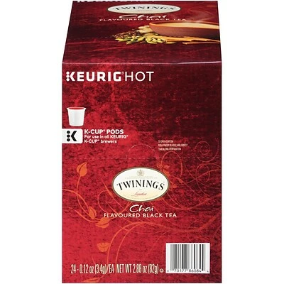 Chai Tea K-Cup® is perfectly balanced black tea blended with sweet & savory spices. Black tea with sweet & savory spice flavors of cinnamon, cardamom, cloves & ginger. Contains 24 K-Cup® pods per box.