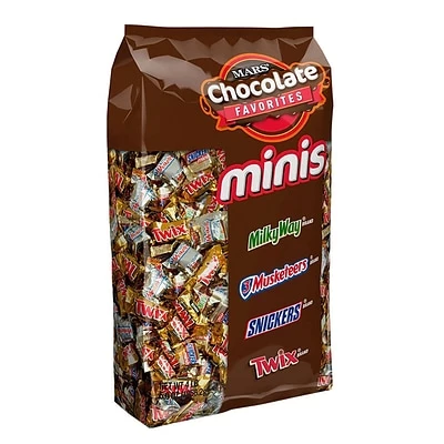 Every bag of MARS Chocolate Favorites Assorted Minis Variety Mix is a tasty way for office managers to stock the office kitchen and treat coworkers. Every bag features individually wrapped Snickers Minis, Twix Bars, 3 Musketeers Chocolates and Milky Ways Candy Bars. Welcome guests to the office with a chocolate treat, or throw delicious office parties with assorted miniatures.
