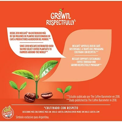 Discover Nescafe Dolce Gusto Lungo Decaf – A full-flavored, naturally decaffeinated coffee with roasted coffee notes and undertones of ripe blackberry. It is full bodied with a fine silky crema. Intensity: 6 out of 11. Our expert coffee creators have carefully blended 100% Arabica beans, naturally decaffeinated using pure water. The rich flavors and aromas are carefully preserved. Product is to be used exclusively with Nescafe Dolce Gusto machines. The hermetically sealed capsules make for a rich and aromatic cup every time.