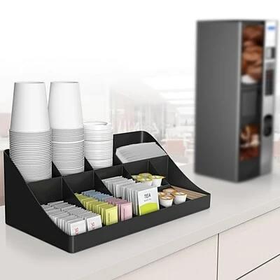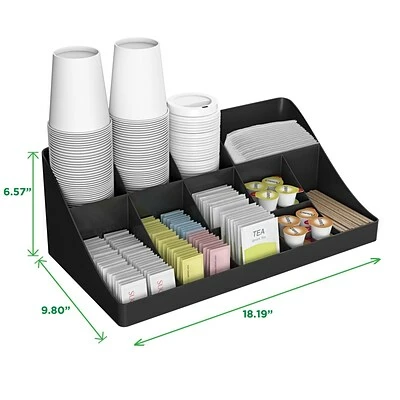 Organizer will hold all of your serving essentials, including sugar, cups, stirrers, napkins, creamers and even K-cups