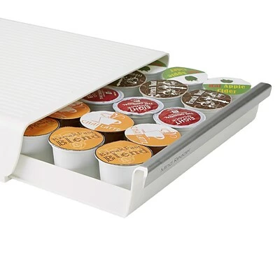 Forget the cheap wire mesh holders with sticky drawers and flimsy construction that eventually sag. This holder is built to last with attention to detail and superior materials. The strong construction means you can safely place your Single serve coffee machine directly on top of the drawer without worrying that it will eventually sag or that the heat will compromise the coffee pods underneath