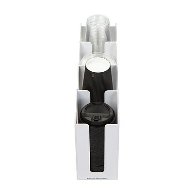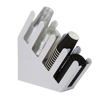 Organize Cups and lids with the Mind Reader 4 compartment cup and lid holder. Perfect for restaurants, breakrooms, and kitchens. This unit is made from an upscale acrylic sure to be a hit in any breakroom or kitchen.