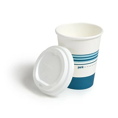 Serve up coffee or tea in a cup that has the hots for its lid with this single-wall hot cup and lid combo pack. The 12-ounce capacity holds just the right amount of your most beloved brew, and each lid boasts a super sipping spout so you can savor every last drop. Designed to be the best of buds, this Perk™ single-wall hot cup and lid combo pack features 10 sleeves of 50 cups and lids to get along in your break room.