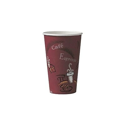 Stock up the lobby, the break room, or other space with these hot cups. With a capacity of up to 16 ounces, these cups are ideal for filling with your morning coffee, tea, or another hot beverage, while the rolled rim allows for a lid to be attached securely. These Solo Bistro paper hot cups are lined with polyethylene, creating a moisture barrier that prevents leaking.