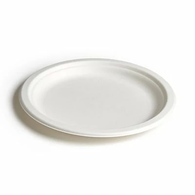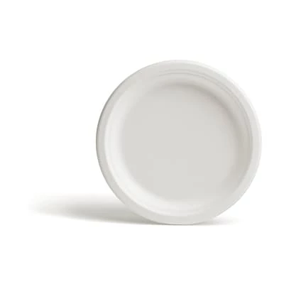 Comes in white and crafted from bagasse, a sugarcane-based sustainable alternative to traditional paper plates