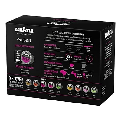 Full-bodied with bold character, the Lavazza Expert Espresso Gusto Intenso X2 espresso with arabica from Brazil, Central America, and Southeast Asia, seduces with notes of walnuts, wood, and intense flavor. The persistent fragrance recalls a game of contrasts, combined to perfection.