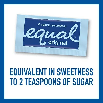 Add flavor, not calories, to your drinks by using these sugar-free sweetener packets. This box comes with 115 single-serving Equal Original sweetener packets to keep cafeterias, lobbies and break rooms stocked.