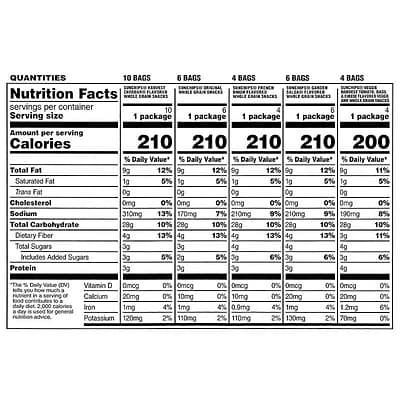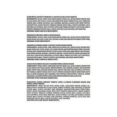 Pack contains ten Harvest Cheddar chips, six Original chips, four French Onion chips, and ten Garden Salsa chips