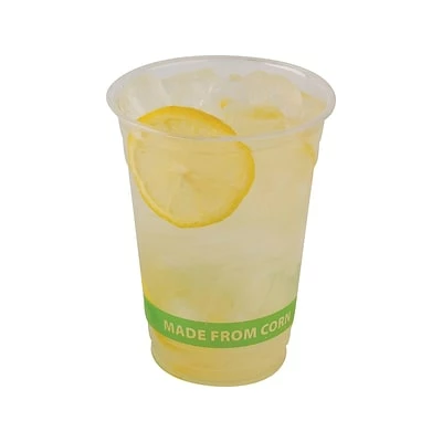 Provide drink containers for customers, employees and others with these cold cups. The smooth rolled rim provides a comfortable drinking experience and allows for a lid to be securely attached, protecting desks, tables and other surfaces against spills. Eco-Products compostable corn cold cups come with 50 to a pack for easy stocking, and the sturdy plastic construction prevents leaks.